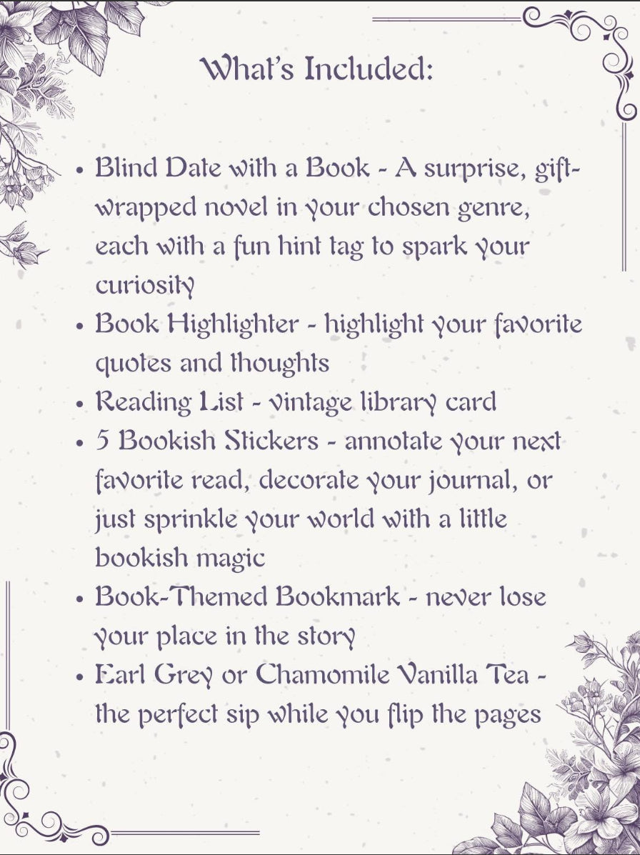 Unbox a little mystery + magic with our Blind Date With a Book Surprise Gift Set — the perfect treat for book lovers and gift-givers alike. Each set includes a wrapped surprise novel in your chosen genre, plus cozy extras to make your reading time unforgettable.