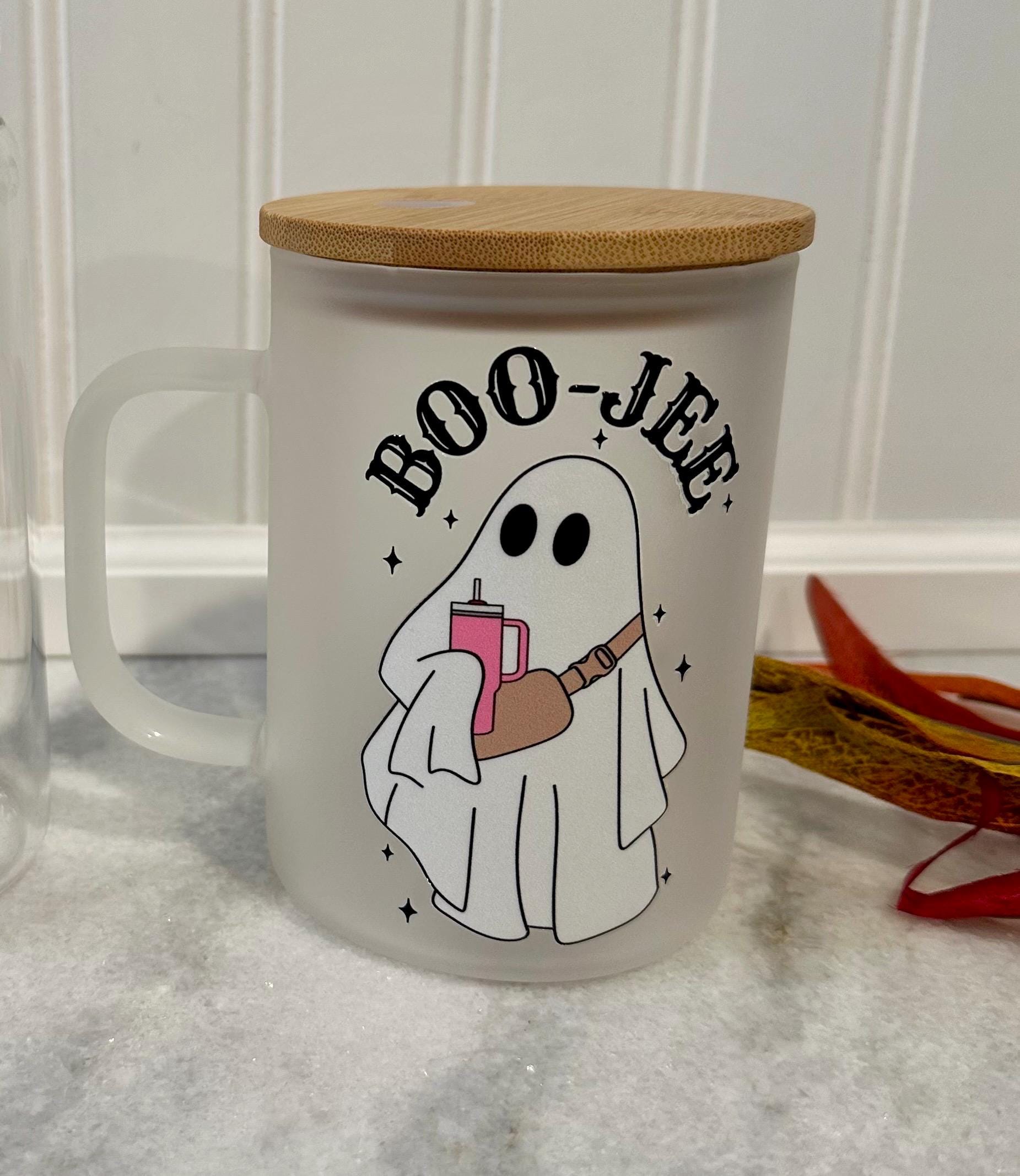 BOO-JEE Ghost Glass Can Cup or Coffee Mug